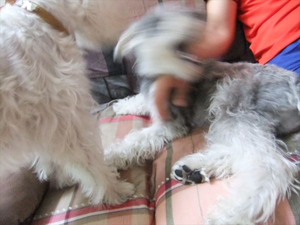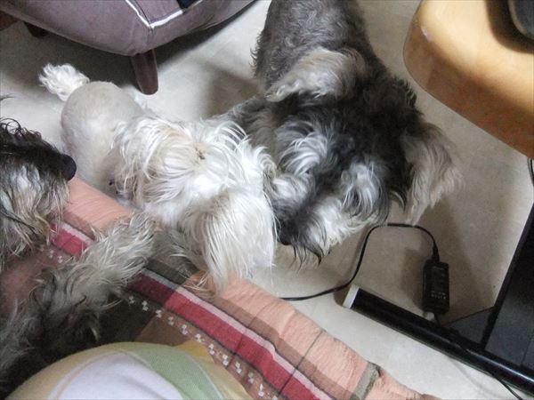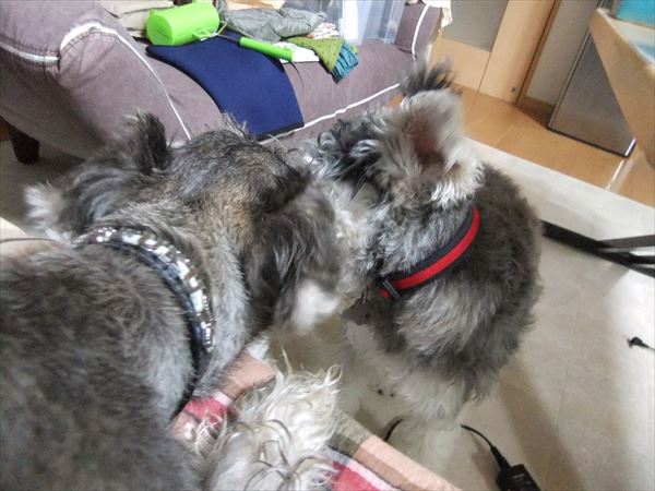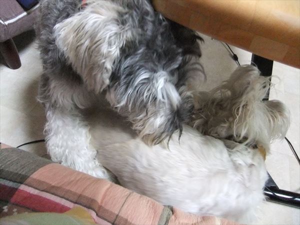 テーブルの周りを、がうがういいながら、ふたりでぐるぐる。