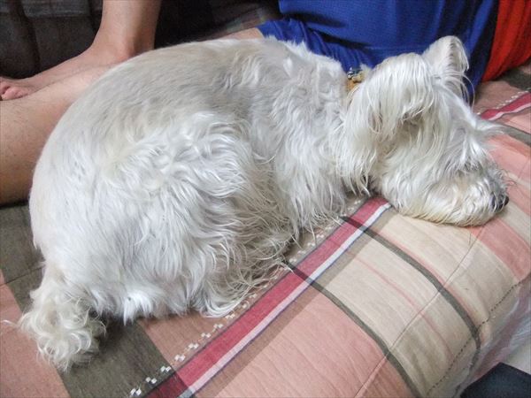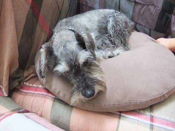 相変わらずクッションの上。