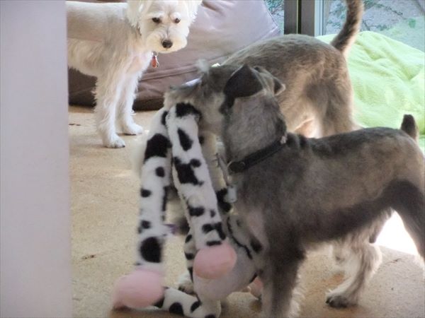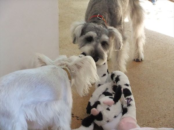 じんとふくの、引っ張りっこです!!(゜.゜)(゜.゜)(゜.゜)
