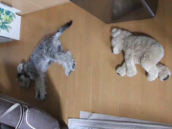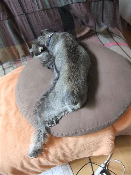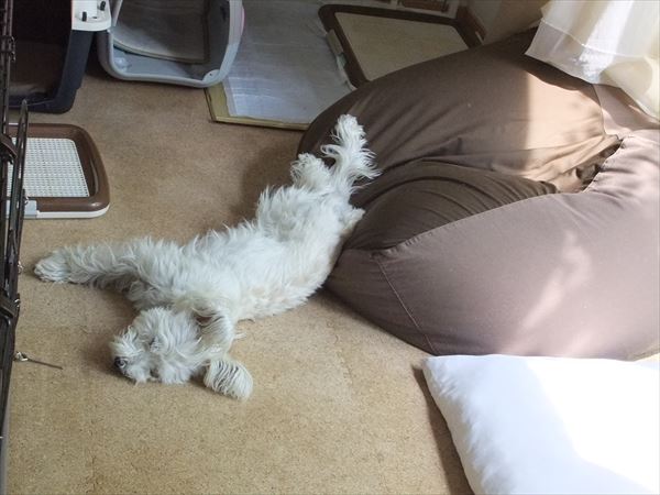 今日は暑くて、丸くなれないんでしょうね。(^^ゞ
