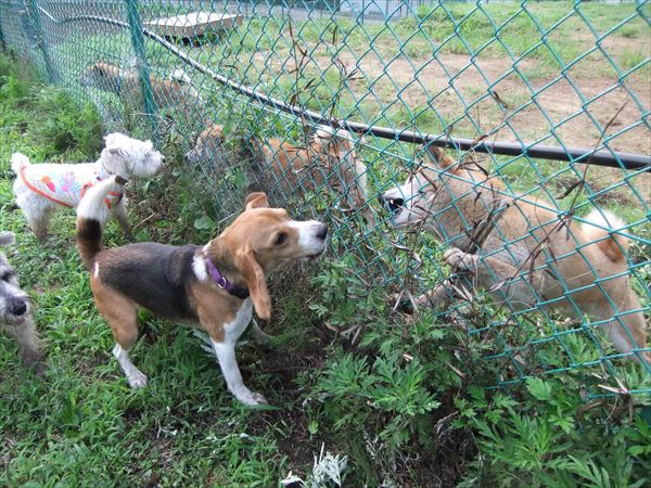お隣には、こちらの持ち主の柴君たちがやってきました。