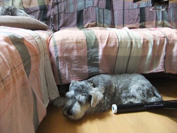 ソファーの下の隙間に挟まっているのが好きです。